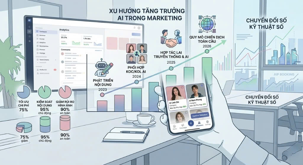Ở góc độ mô hình, AIP Booking phản ánh một cách tiếp cận mới: thay vì tập trung hoàn toàn vào cá nhân KOL/KOC, doanh nghiệp có thể kết hợp thêm yếu tố công nghệ trong quá trình sản xuất và phân phối nội dung.